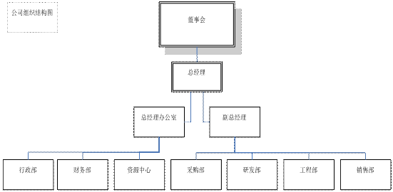 公司下设:行政部、财务部、资源中心、采购部、研发部、工程部、销售部。